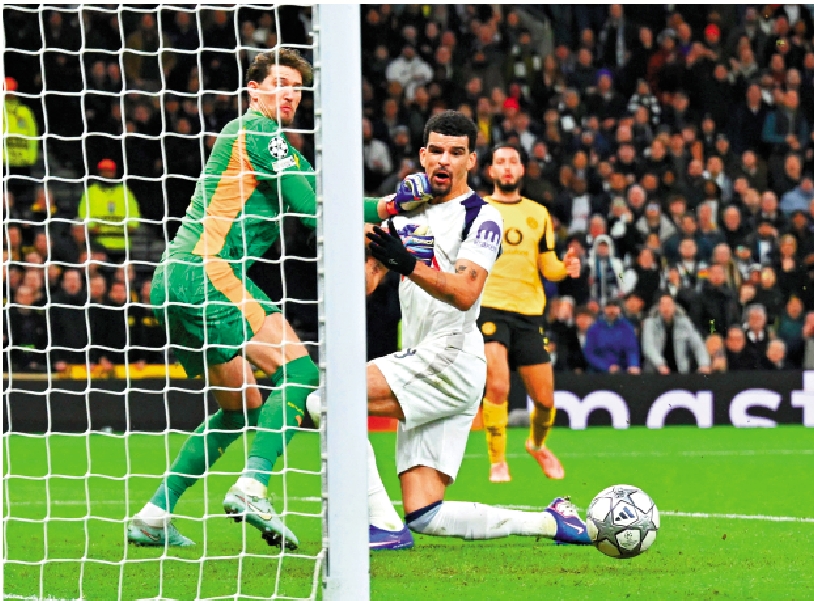 英超熱刺主場對德甲多蒙特,主隊13分鐘由中堅基斯甸羅美路近門建功,至26分鐘客軍的丹尼爾施雲臣領紅被逐,熱刺於37分鐘由前鋒蘇蘭基(右二)入球取得個人今季首個入球下贏2:0,有望直接晉級16強,盛傳地位不保的熱刺主帥法蘭克因贏波暫時保住帥位。