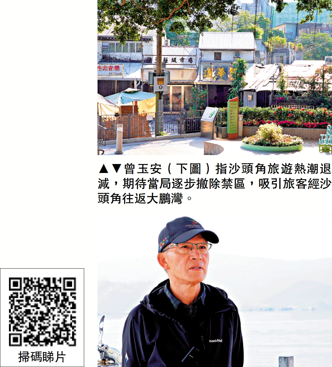 曾玉安指數年前政府開放沙頭角旅遊,在區內增設旅遊配套設施,包括打卡景點、公園、公眾廁所等,又廣泛宣傳沙頭角美食,是有了好開始,但仍不足夠。他指逐步撤除禁區,令本地及海外旅客不需任何證件都可隨時隨地來到沙頭角,再出海前往大鵬灣,做到無障礙旅遊:「攞證(禁區紙)是障礙,長者不懂上網,因為禁區障礙,阻隔了75年沙頭角及大鵬灣一帶的島嶼發展。」他指沙頭角每日個人遊名額有3000個,目測平均只約200至300人。根據警方提供數字,2025年6月至11月,個人旅遊禁區許可證申請量,由2025年6月的5592宗,升至同年11月的7680宗。