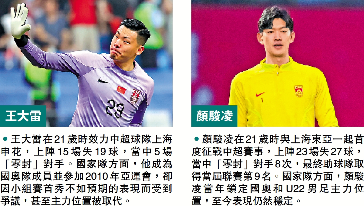 U23國足新晉門將李昊現階段要與國足一隊門將王大雷及顏駿凌直接競爭言之尚早,但在同年齡段比較則可以看到李昊的潛力。