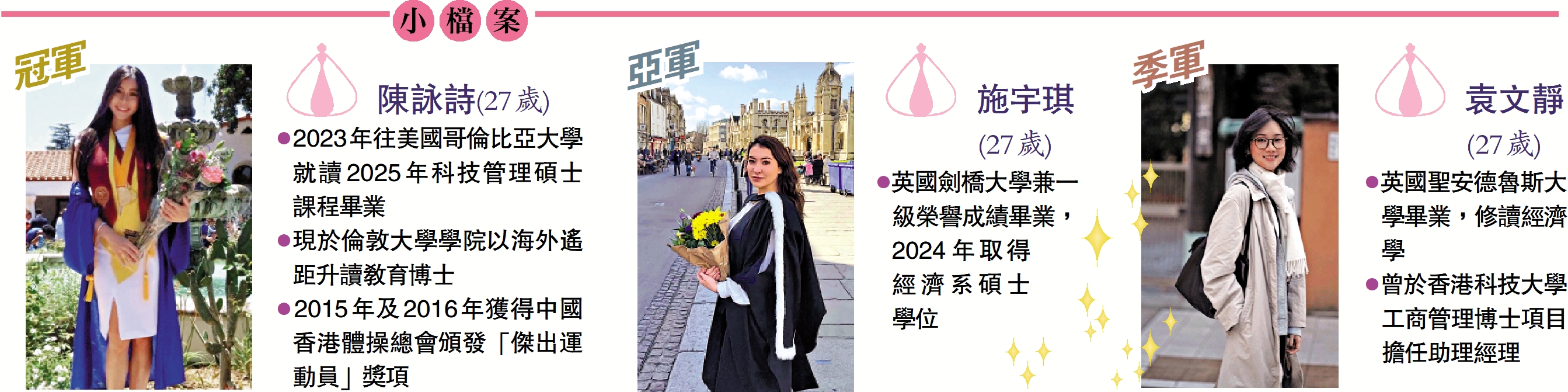 ●英國劍橋大學兼一級榮譽成績畢業,2024年取得經濟系碩士學位