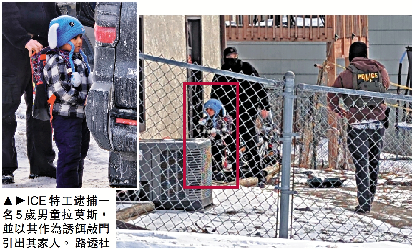 另外,明尼蘇達州阿波利斯都會區學區和市議員22日表示,ICE本月拘留至少4名未成年人,包括一名5歲男童拉莫斯。