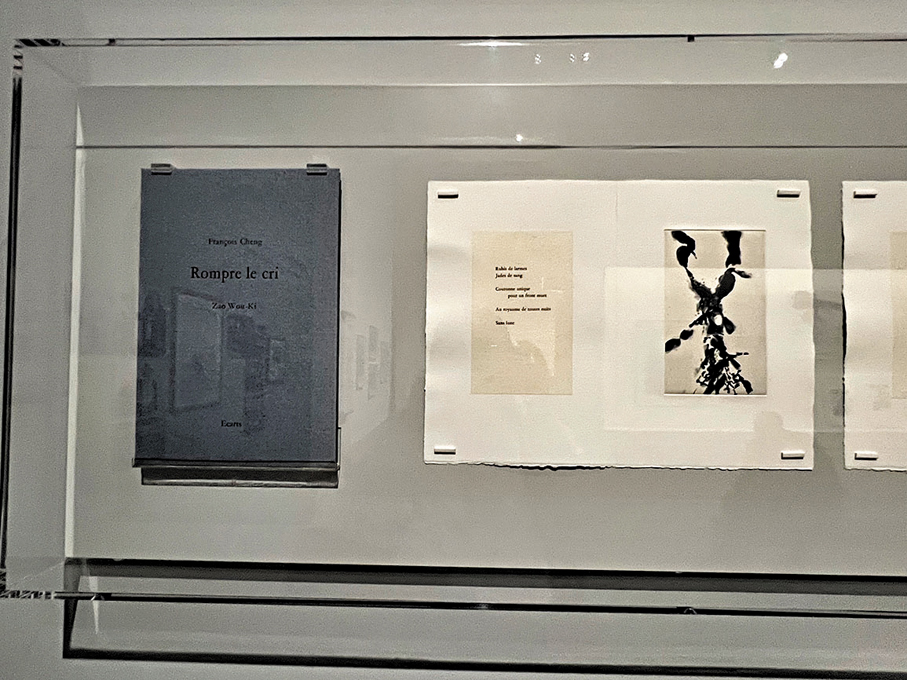 從這本書中,可見趙無極的版書旁邊,配有其友人兼法籍華裔詩人程抱一的詩作。中國傳統藝術有詩畫一律之說,即詩與畫彼此相連,此次合作體現了這種藝術傳承。觀者可試留意二人如何各自運用文字和圖形來表達相似意境。