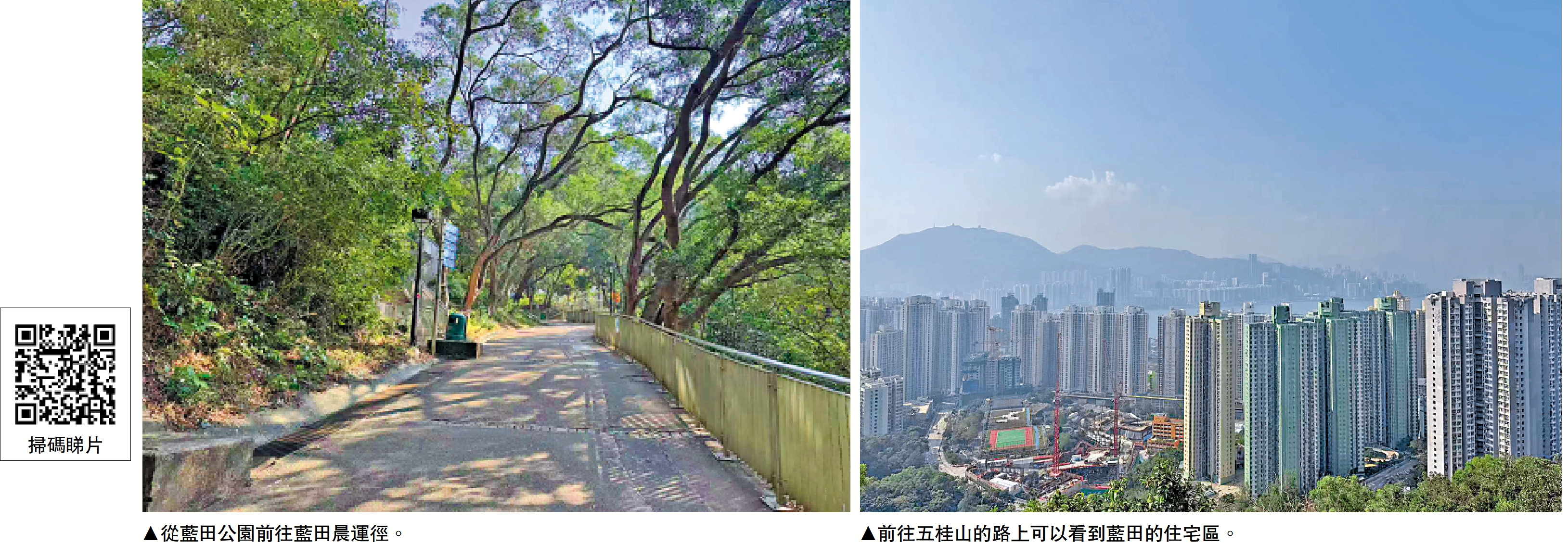 一直沿着藍田晨運徑走,不時能遇到一些居住在此的老人結伴鍛煉。在通向五桂山的起始點前,還能看到幾條上山路,可以選擇就此走捷徑上山,亦可選擇兜一圈風景,前往起始點。