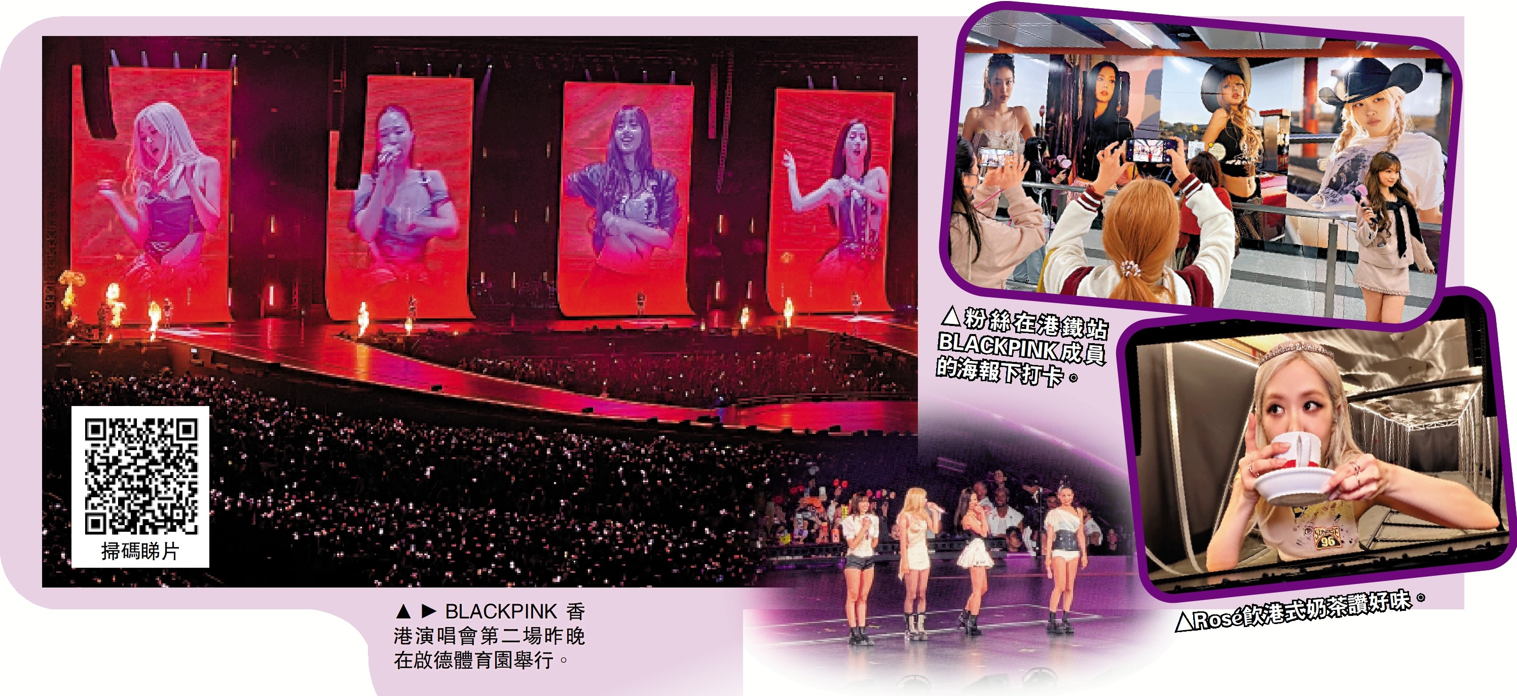 韓國人氣女團BLACKPINK在香港啟德體育園主場館舉辦一連三日的《Deadline》世界巡迴演唱會,昨日來到第二晚,四位成員Jennie、Rosé、Lisa及Jisoo約晚上6點40分在舞台性感現身,整個場館座無虛席,粉色應援錘亮遍全場。