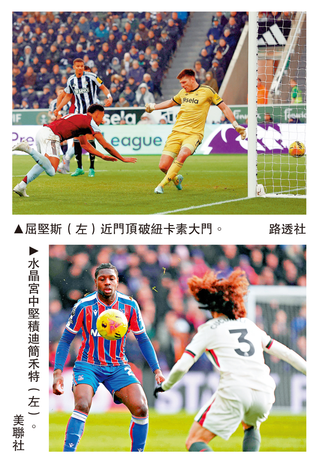 【大公報訊】記者梁潤森報道:英超25日舉行紐卡素主場對阿士東維拉的比賽,雖然主隊控球率較高,卻始終未能打破缺口,反觀維拉上、下半場憑藉布安迪亞及奧利屈堅斯各入1球,以2:0重響英超勝鼓,賽後積46分並僅以4分之差落後榜首阿仙奴。