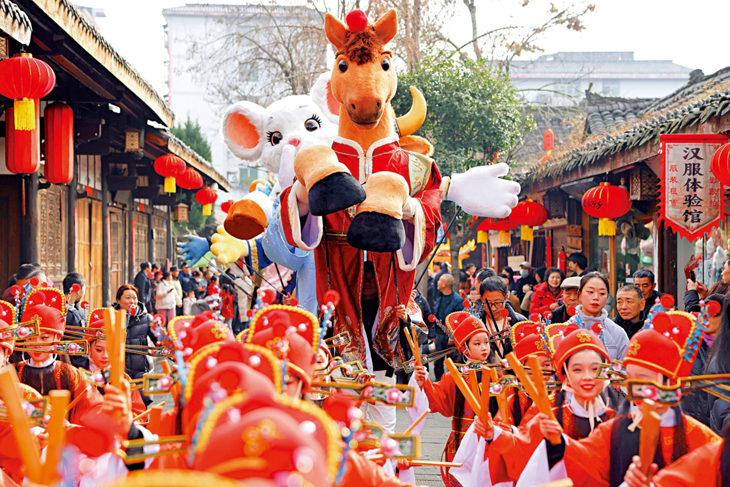 一月二十六日是中國農曆臘月初八,在四川閬中舉行的二○二六閬中古城過大年春節文化系列活動中,魚燈、板櫈龍、採蓮船、閬苑小春倌、十二生肖偶等組成的巡遊隊伍穿梭於古城街巷中,現場熱鬧非凡。\中新社