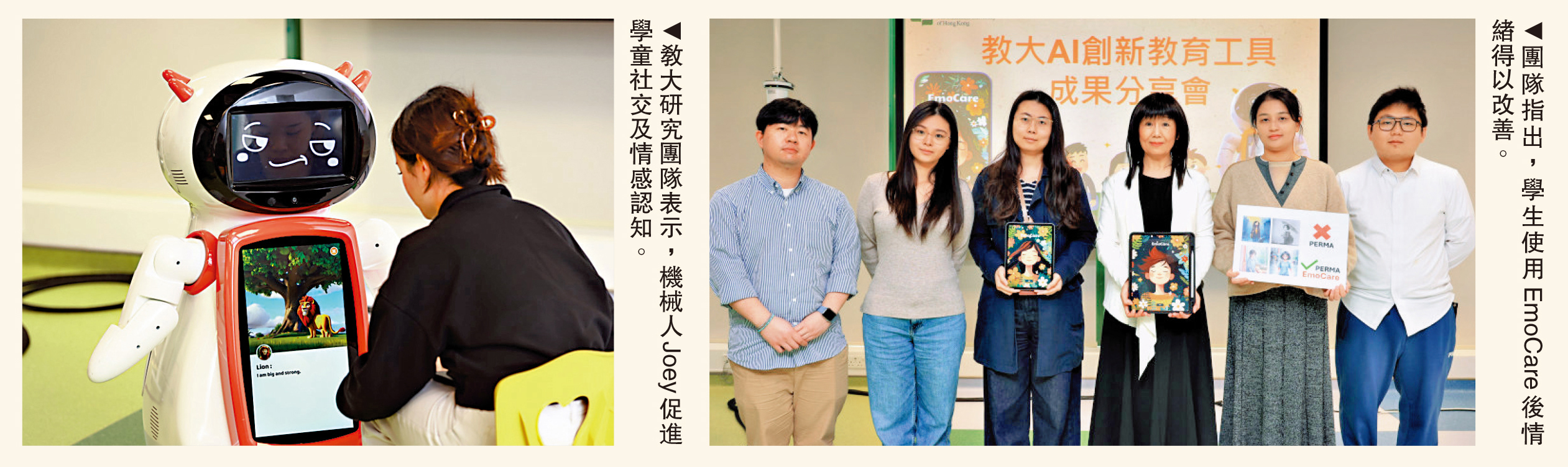 香港教育大學於昨日公布兩項相關研發成果:語言學習社交機械人Joey及情緒健康支援應用程式EmoCare。兩項成果不僅協助教師及社工善用AI(人工智能)提升學生的學習動力與專注力,亦關顧學生的情緒健康。