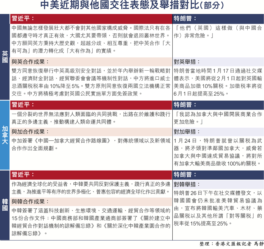 中美近期與他國交往表態及舉措對比(部分)
