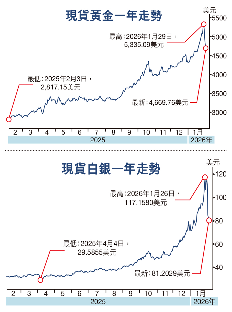 雖然面對貴金屬價格大調整,但摩根大通昨日亦預計,在央行和投資者需求推動下,金價到年底前,仍將可以升至每盎司6,300美元,較目前約4,500美元水平,有四成的上升空間。摩通的報告指出,對黃金中期走勢仍保持堅定的看好信念,理由是黃金正處於結構性、持續性的資產配置多元化趨勢中,而在真實資產相對紙面資產持續跑贏的格局下,這一趨勢還有相當大的發展空間。