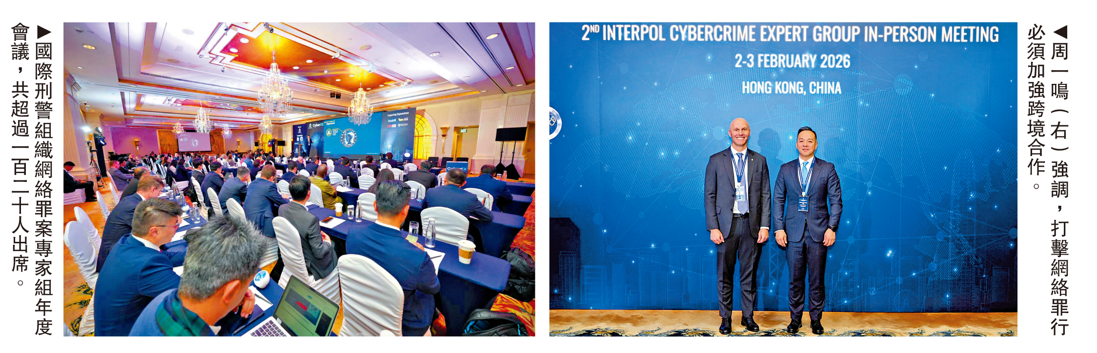 【大公報訊】香港警務處昨日及今日(2月2日及3日)與國際刑警組織合辦「國際刑警組織網絡罪案專家組(專家組)年度會議」,以「打擊網絡罪行產業化」為主題,吸引來自超過30個國家/地區的執法機構人員、業界及國際組織專家,共超過120人出席。會議首度在香港舉辦,彰顯香港警隊在國際警政與各地執法機關的緊密合作,以及在全球打擊網絡罪行專業領域的影響力。