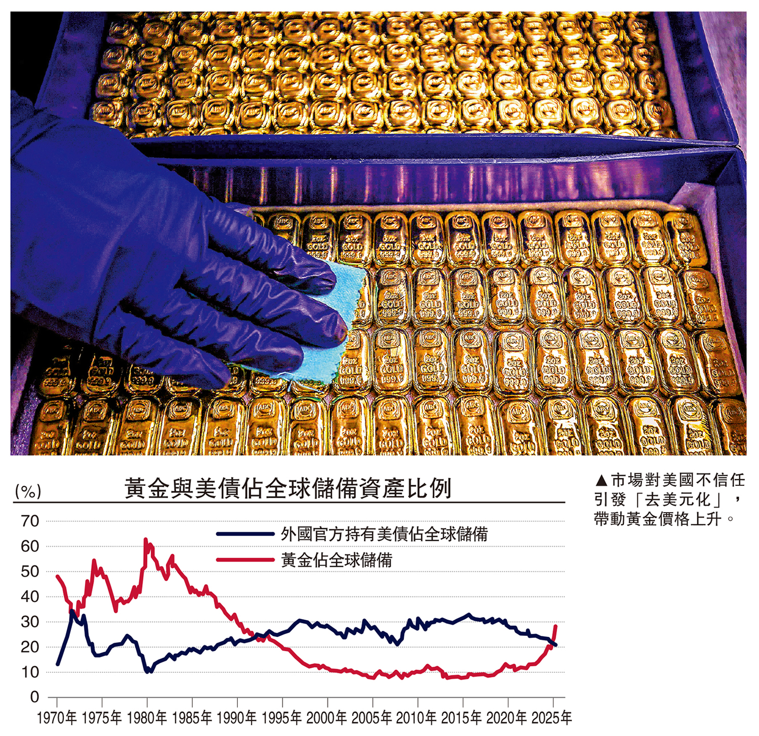 但現在的問題是,2025年特朗普第二任期以來,針對全球尤其是「盟友」們的關稅,挑戰現有國際秩序的種種做法,再加上黃金超過美債這個關鍵分水嶺的出現,是否會導致這個原本「涇渭分明」的陣營的界限變得愈來愈模糊?使得愈來愈多屬於美債陣營的市場也開始轉向黃金?