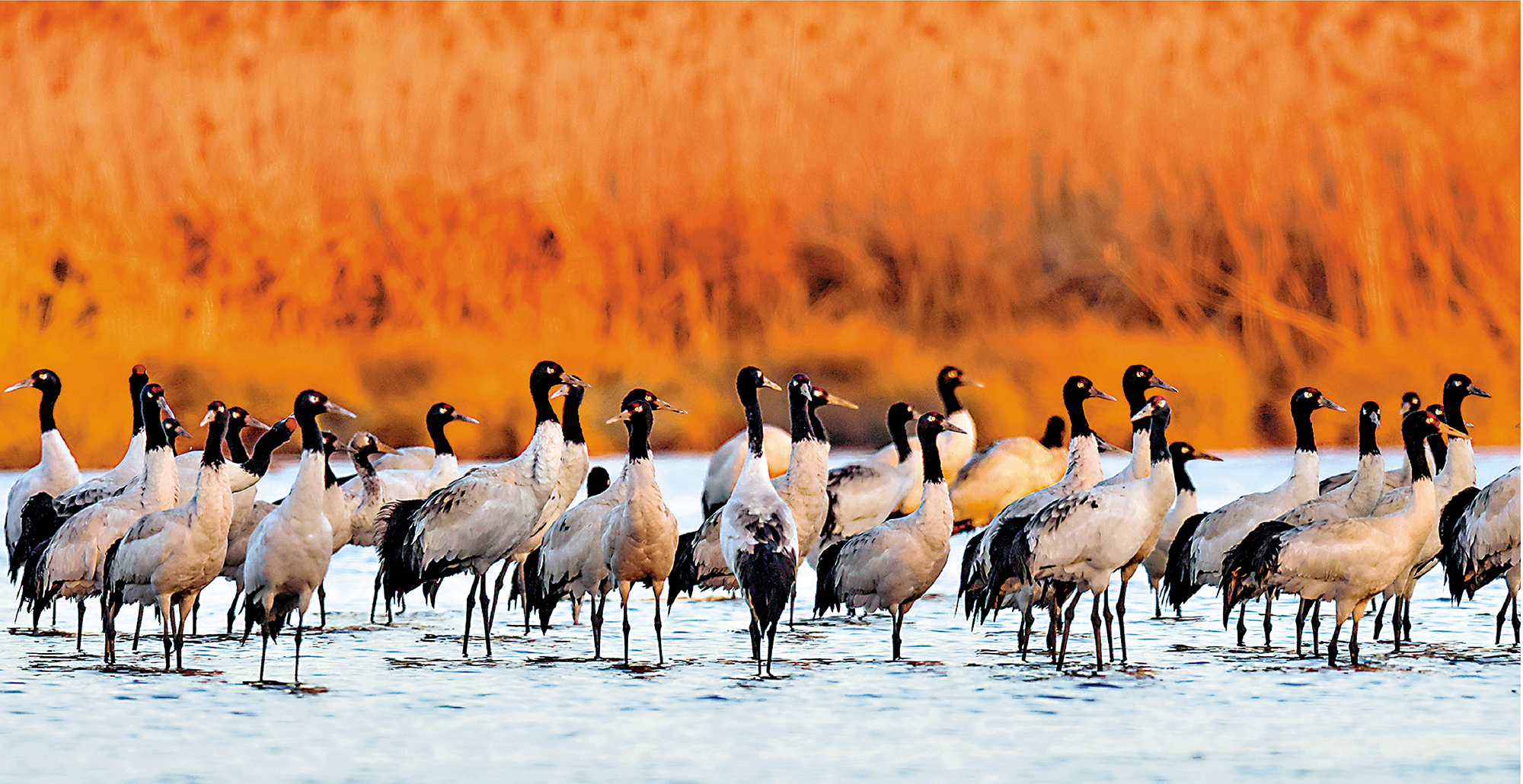 冬日,地處貴州省畢節市威寧縣的草海國家級自然保護區呈現萬鳥翔集的生態美景,黑頸鶴、灰鶴以及斑頭雁等大批候鳥來此越冬。\新華社