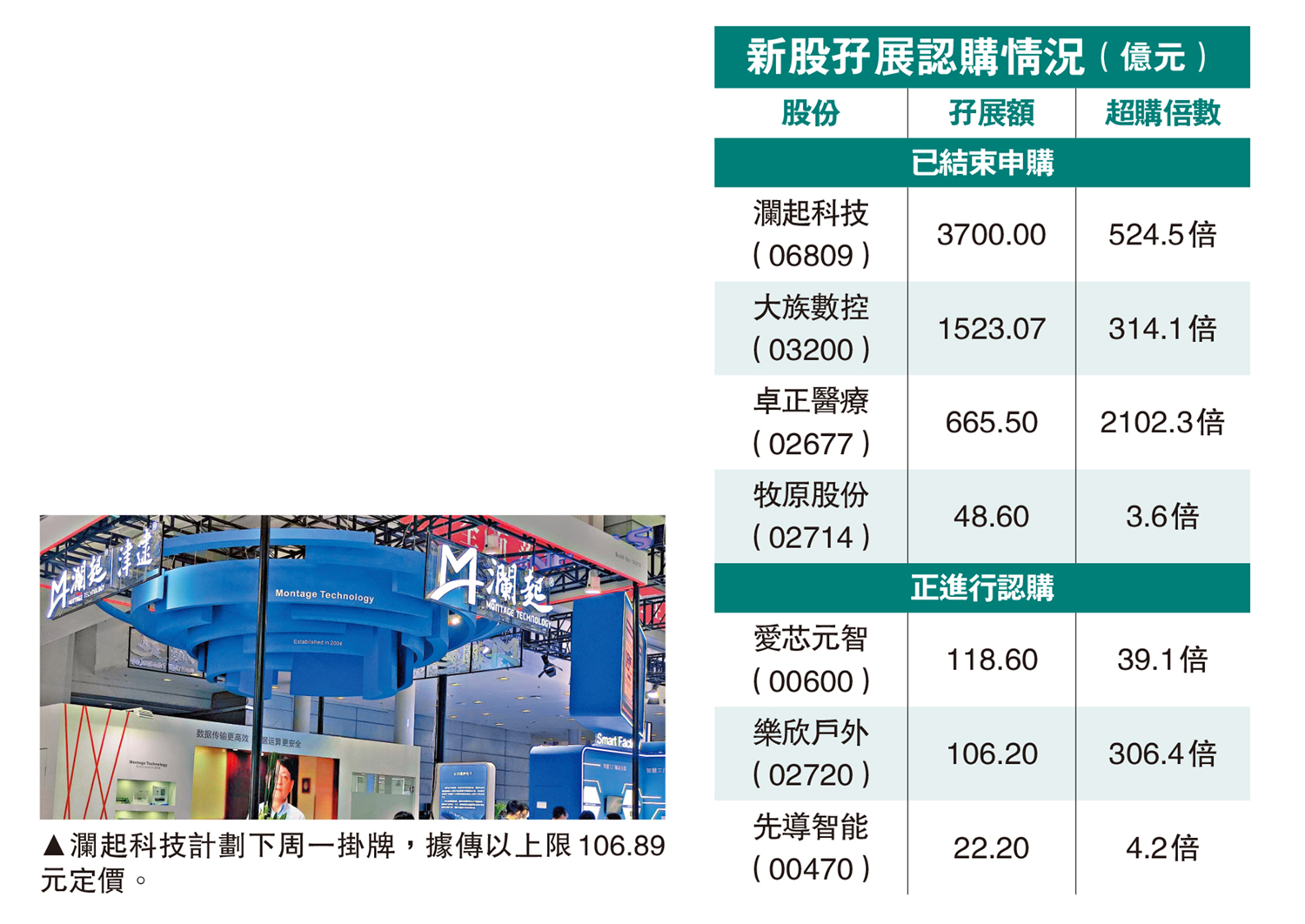 瀾起孖展超購524倍 凍資3700億