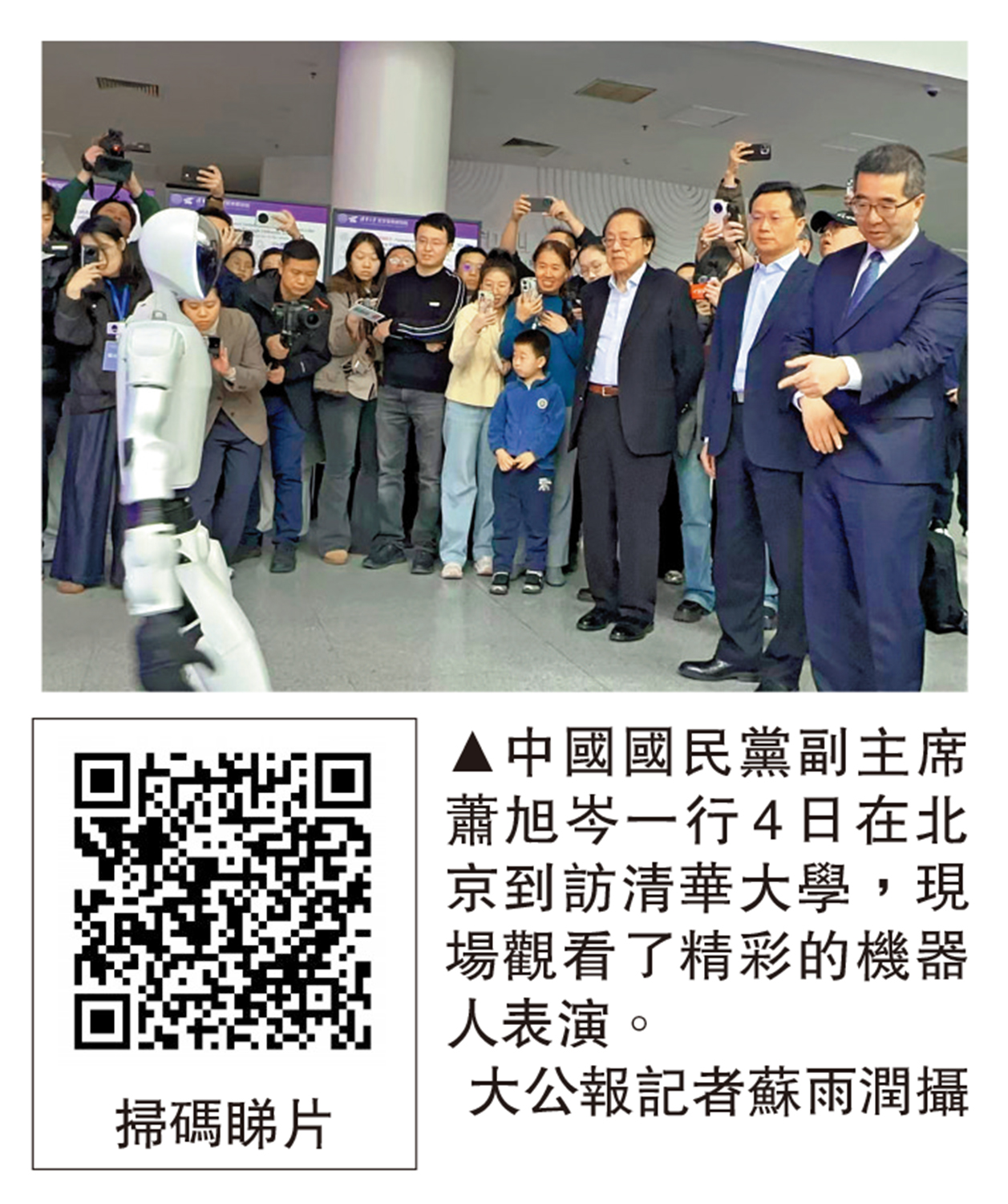 蕭旭岑一行4日下午到訪清華大學,現場觀看了精彩的機器人表演。參觀結束後,中國國民黨國政研究基金會副董事長李鴻源表示,此行的核心就是兩個字「務實」,兩岸要和平。此次很多台灣的專家學者希望兩岸能在科研方面結合,進一步落實在產業方面。