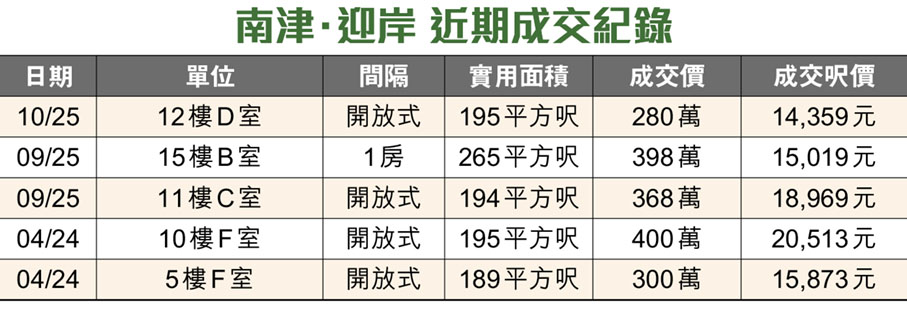 南津·迎岸由恒基地產(0012)發展,項目屬單幢樓,樓高24層,合共提供142伙,單位實用面積約164至493平方呎,間隔涵蓋開放式至2房單位,當中主打開放式戶,佔總供應量近七成,而2房戶只設1伙,其餘為1房單位。因此,屋苑很適合單身族或分支小家庭。另外,屋苑屬傳統民生區域,位處內街,起居環境相對寧靜。