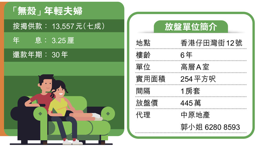 中原地產西南區香港仔大道分行副分區營業經理郭詠媚表示,是次放盤單位屬一房套戶,位處高層,放盤價445萬元,實用呎價17,519元,享海景,間隔清雅簡約,四正實用 。