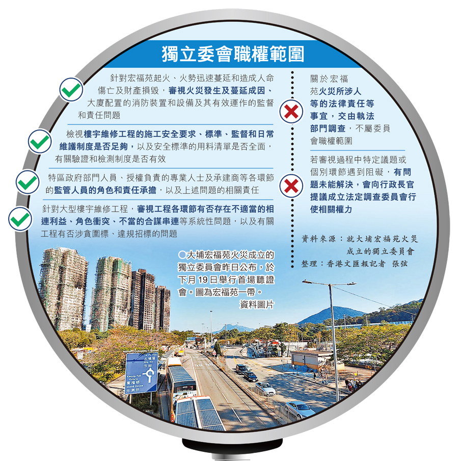 宏福火災獨立委會下月辦聽證會 證據揭示結構性問題需向公眾解釋 循大火起因查維修有否涉貪