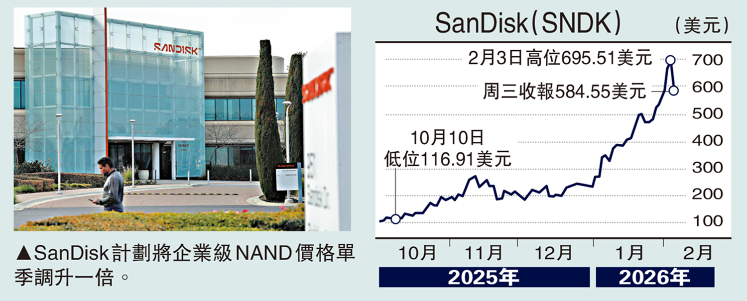 SanDisk的強勢地位,反映了AI發展為存儲行業需求帶來具結構性的改變。隨着AI應用從訓練轉向推理階段,對高速、大容量存儲的需求呈現爆發式增長。不少機構對SanDisk進行估值重估,並紛紛上調目標價,其中最樂觀的看1000美元,距離現價665美元水平仍有可觀的上升空間。不過要留意,SanDisk股價年初至今走勢太強,如果太多獲利賣盤突然在高位湧現的話,股價波動性會很大。儘管短期面臨高估值風險,但中長期價值重估仍在持續。