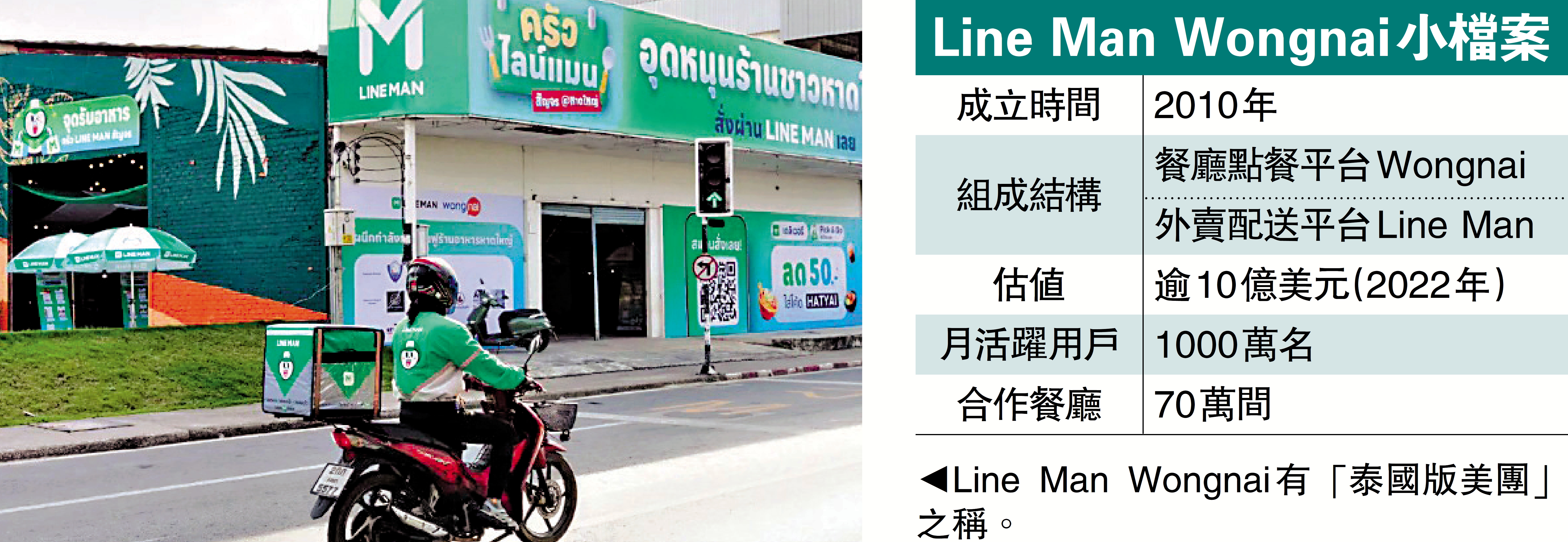 Line Man Wongnai的歷史可以追溯至2010年,由Yod Chinsupakul與大學好友一同創辦的餐廳點餐平台Wongnai,在2020年與Line旗下的泰國外賣配送平台Line Man合併而來。該公司在2022年融資2.65億美元,估值逾10億美元,旗下月活躍用戶達1000萬名,與70萬間餐廳建立合作關係。