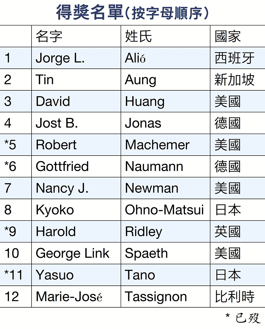 「全球眼科領袖榜」頒獎盛典在港舉行 12人獲獎