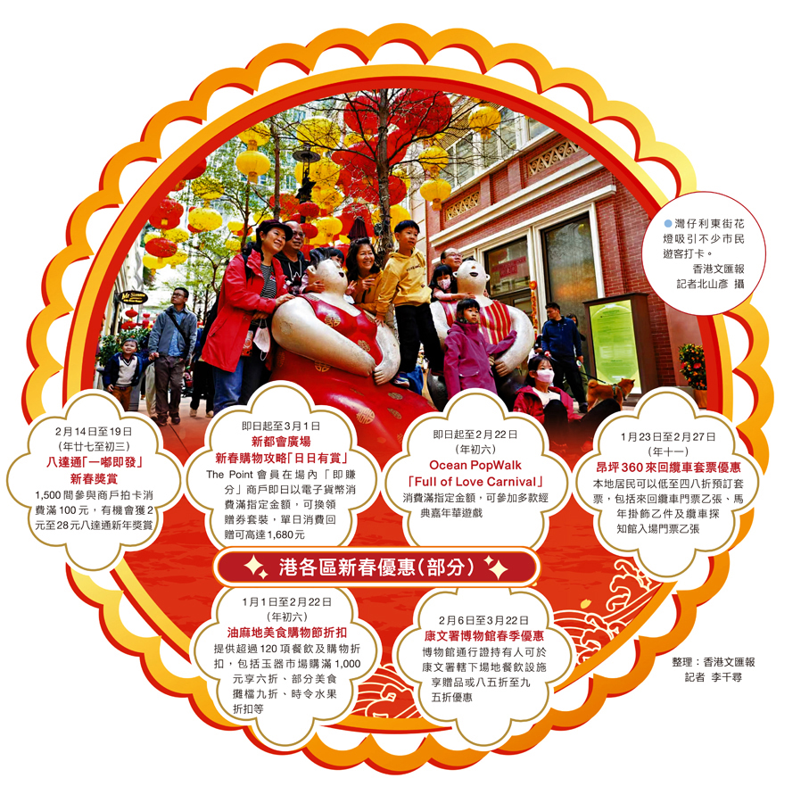 她指出,香港由大年初一至年初五將推出一系列活動,除有煙花匯演,亦包括花車巡遊、馬年賀歲盃足球賽及農曆新年賽馬日等,花車巡遊後並會在啟德體育園等地方展出,相信會吸引旅客在不同時間來港,希望做到「錯峰出行」,避免集中在假期首幾天訪港,而她對農曆新年本港人流和市道感到樂觀。