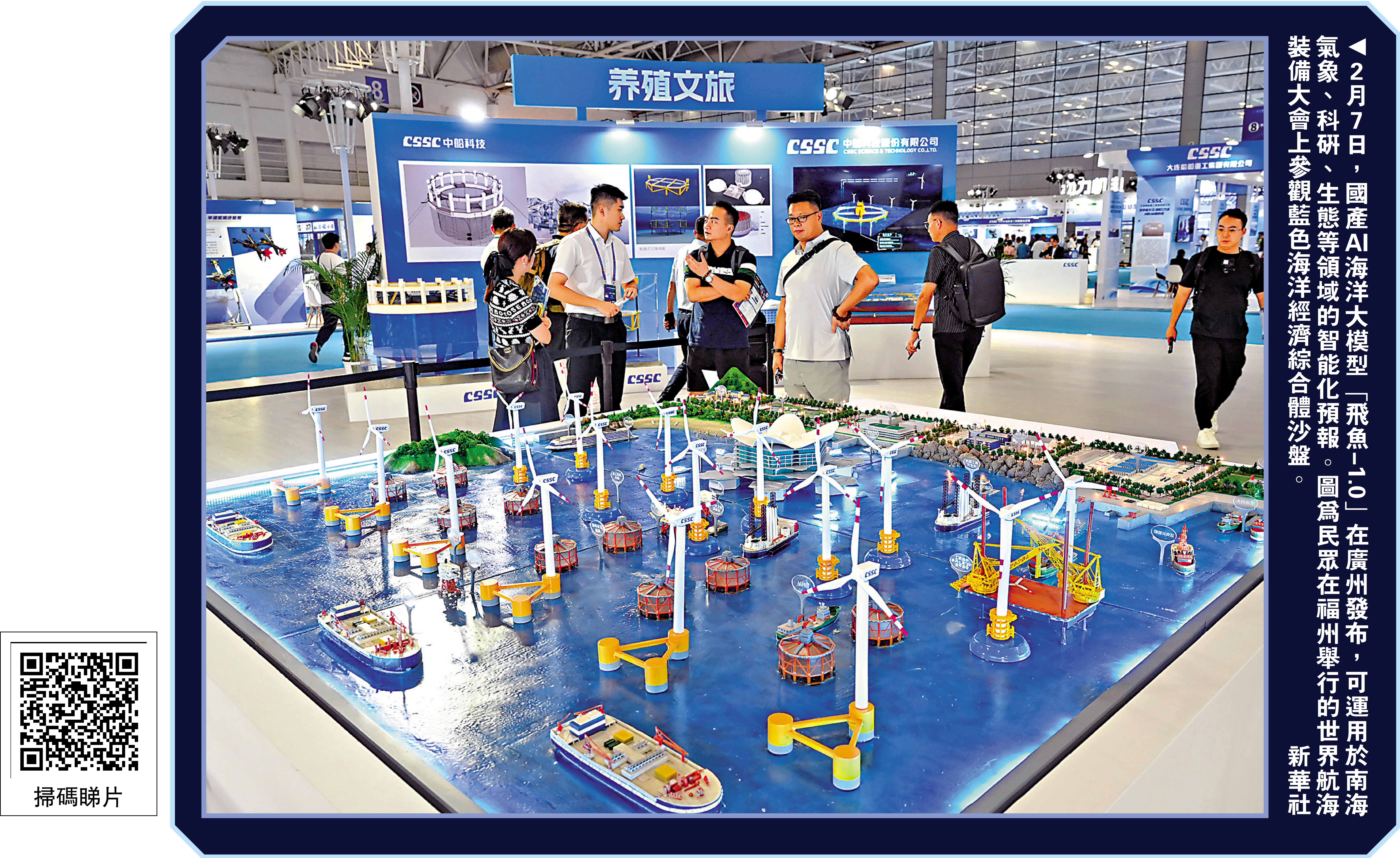 國產AI海洋大模型亮相。7日,由中國科學院南海海洋研究所與中國石油大學(華東)聯合研發的「飛魚-1.0」大模型在廣州發布。這是全球首個面向南海區域的「海─氣雙向耦合」智能大模型,可運用於南海氣象、科研、生態等領域的智能化預報。該模型訓練所用核心數據採用中國科學院南海海洋研究所自主研製的高分辨率南海再分析數據集REDOS 2.0,打破國內海洋大模型長期高度依賴歐美再分析數據的局面。與歐美模型相比,「飛魚-1.0」在預測精度與推理速度上均有顯著提升,僅需3年歷史數據即可完成訓練,在國產化單機環境下完成3天預報僅需3秒。/大公報記者 方俊明廣州報道
