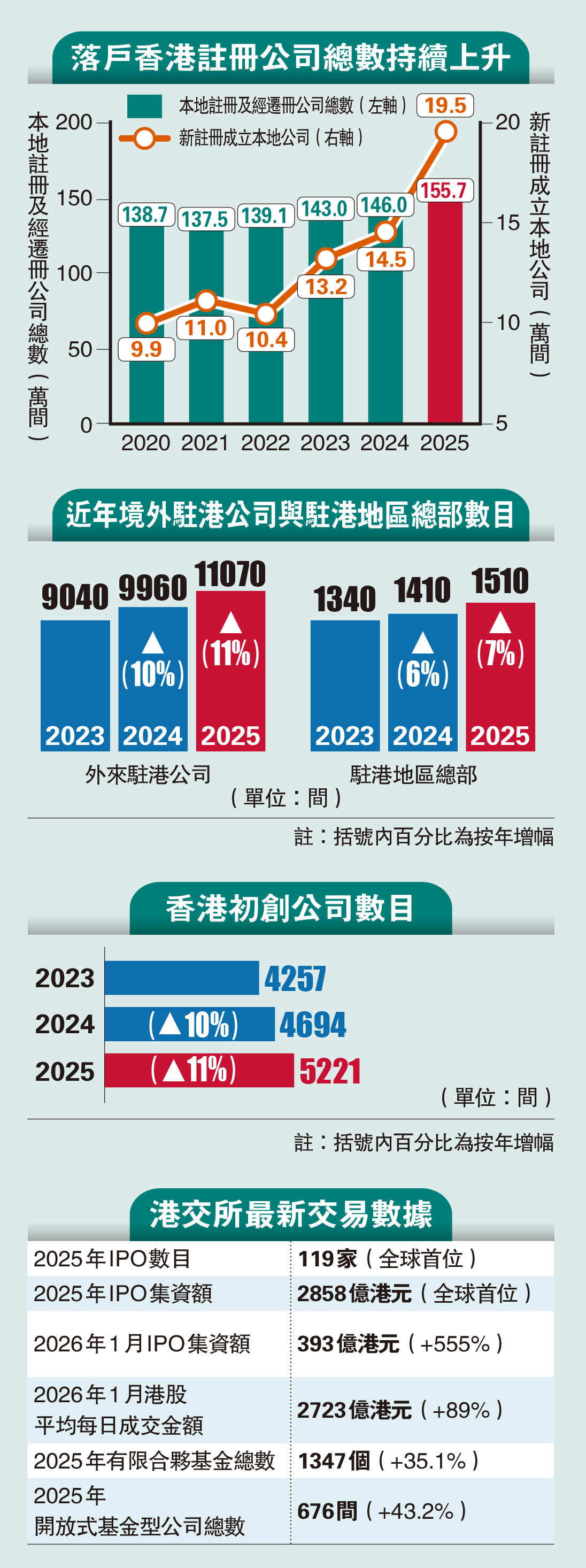 董一岳解釋,企業將總部遷移,並非僅為名義上的註冊地變更,而是實質上將高管團隊及關鍵決策部門落戶香港,這為香港帶來實體經濟與金融的雙重效益。在實體經濟方面,他指,這些企業在本地置業租賃、聘用員工、日常消費以及高管子女教育等需求,已對本地經濟產生蝴蝶效應。