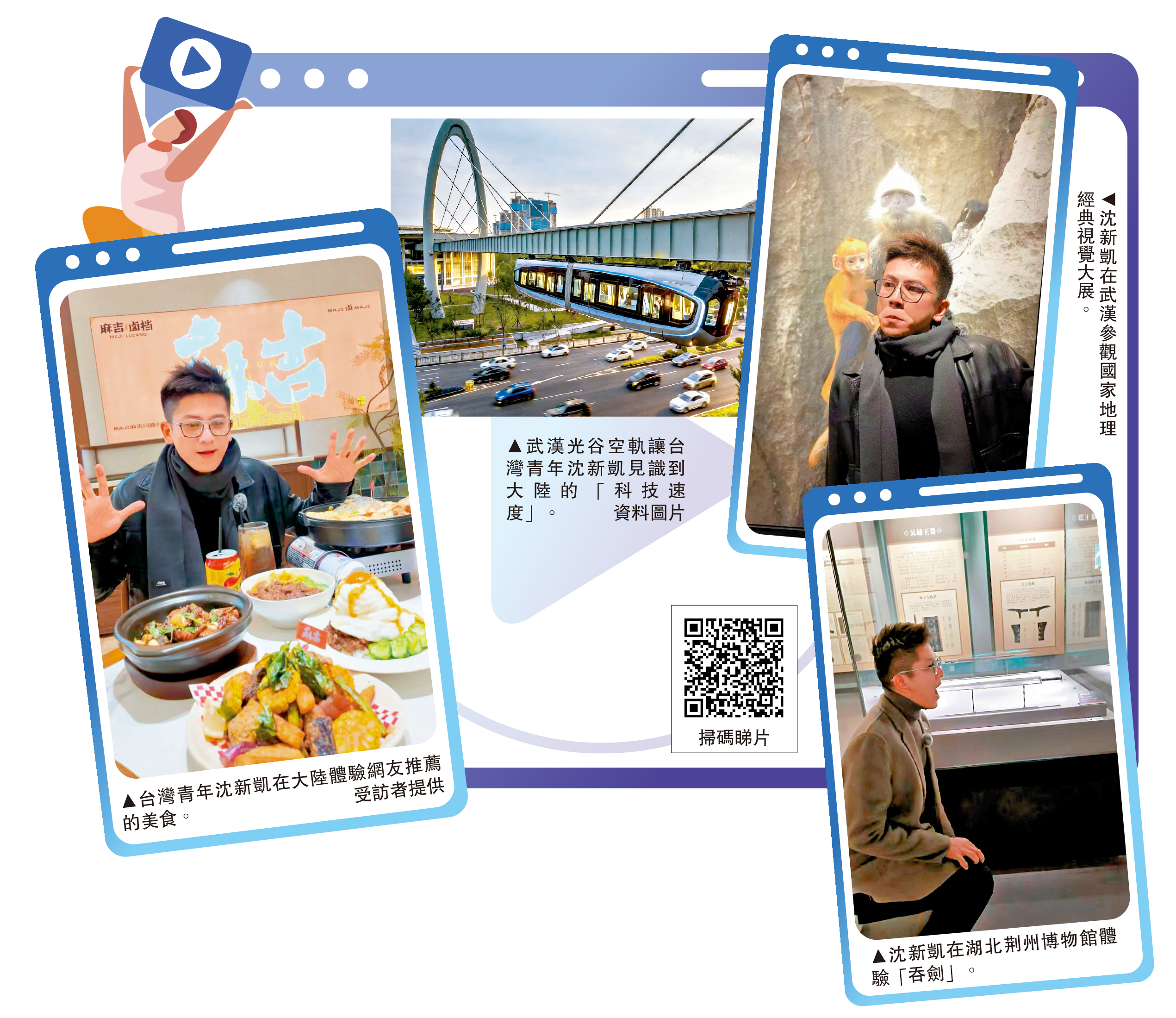 「我也會把在大陸的短視頻發布到我的臉書個人主頁上,分享給台灣朋友和兩岸網友。」沈新凱透露:「有台灣年輕人看了視頻後問我,大陸是不是真的像拍的那樣?我都會告訴他們,我拍的都是最真實的情況,沒有廣告,只是記錄自己在大陸的真實生活,希望能給他們一些參考。」