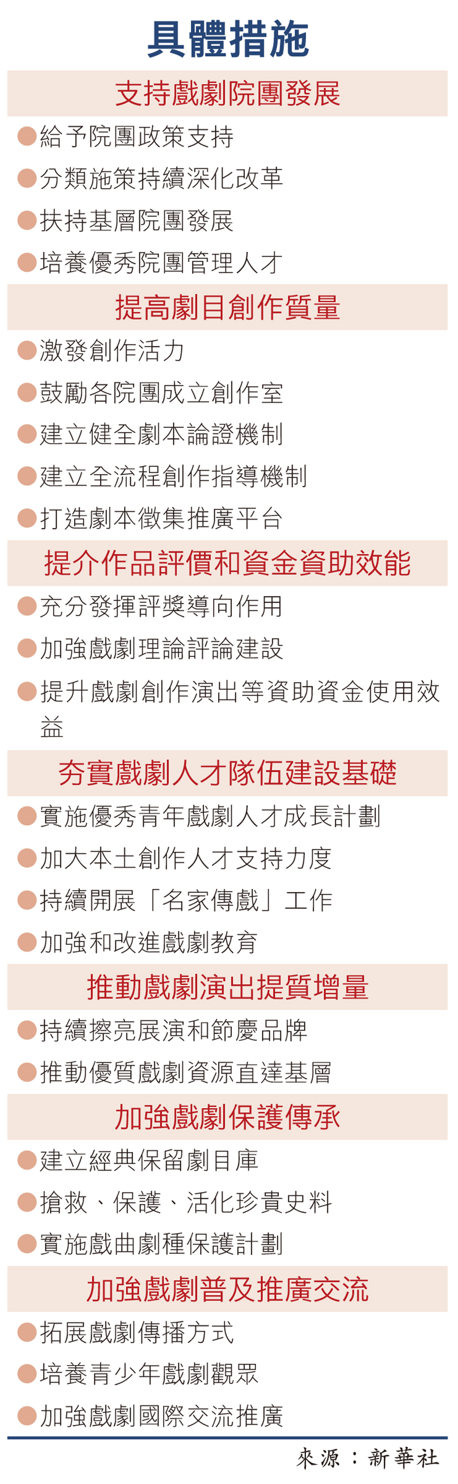 內地戲劇振興三年計劃 加強國際推廣 24招增強創新創造活力 重點培養青年人才