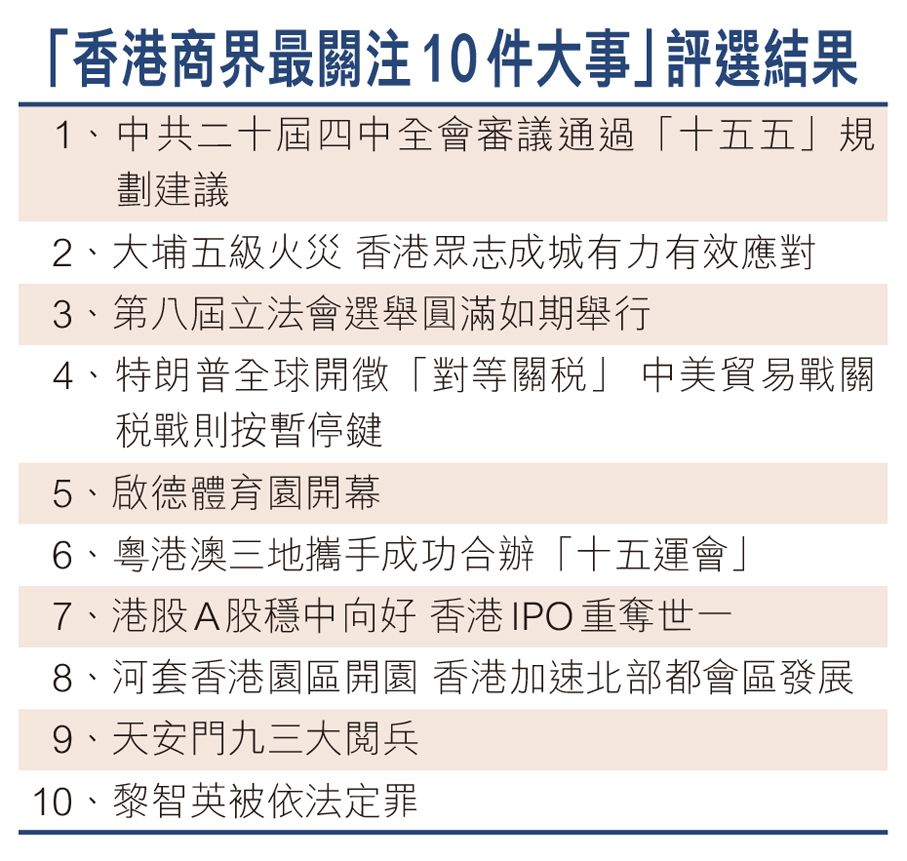 「2025香港商界最關注的10件大事」評選揭曉 通過「十五五」規劃建議最受關注