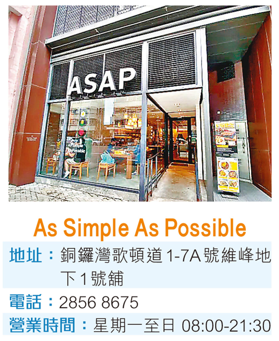 踏入ASAP店內,高樓底加上輕工業風的裝潢營造出悠閒時尚的感覺,拳館就在餐廳附近,Raymond亦是這裏的常客,除了食材美味,在Raymond心中ASAP更代表快樂的味道:「拳擊運動員在比賽前要減磅,經常維持清茶淡飯的生活,所以每次比賽過後我都會來個『卡路里大解放』,盡情品嘗減磅時不能碰的食物,ASAP正是我的首選。」