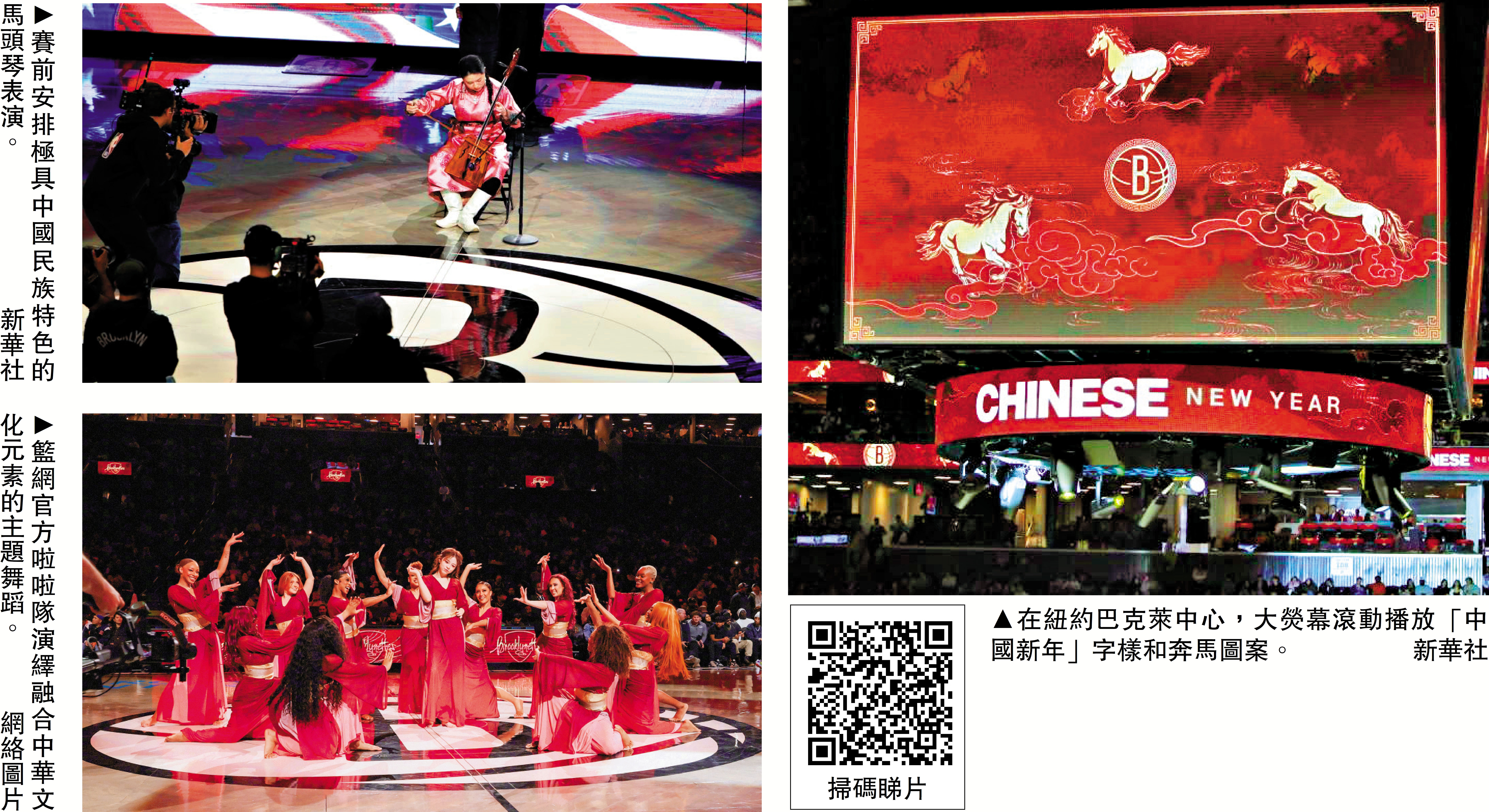 據介紹,籃網隊已連續多年在農曆新年期間舉辦春節賽與賀歲活動。適逢馬年到來,籃網隊特別推出了融合生肖文化與布魯克林街頭風格的限量版周邊商品。當日,籃網隊主場迎戰印第安那步行者隊。賽前,極具中國民族特色的馬頭琴表演點燃了現場氣氛。