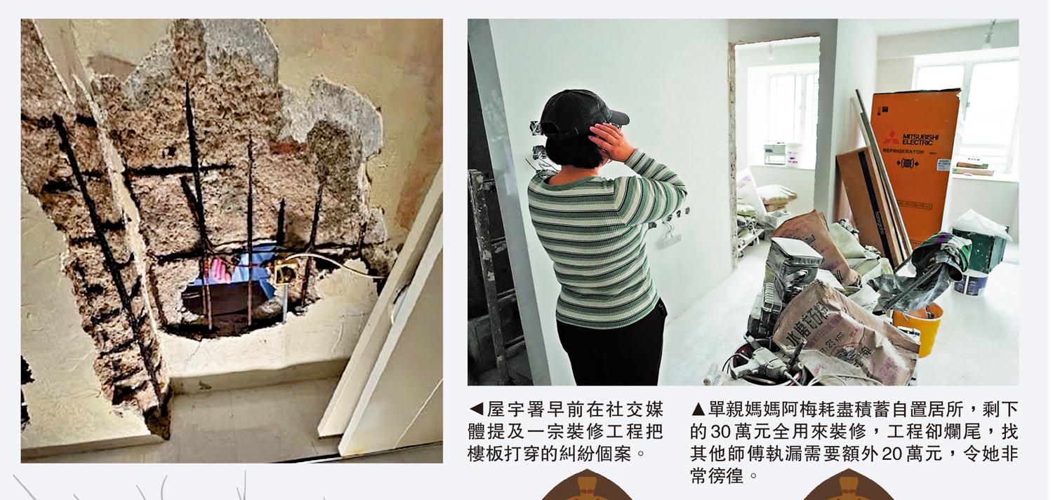 但另一方面,找本地師傅裝修亦不等於能規避糾紛風險。不少事主通過線上的本港裝修app配對請來的裝修師傅,照樣出現工程爛尾、懷疑詐騙等糾紛,且這種情況並非少數。《大公報》於去年3月29日刊出的裝修報道中提到,苦主阿梅通過網上聯絡一名裝修師傅,無奈遇上奸商導致工程爛尾,30多萬元打水漂不得止,還要另外多付20萬元聘請其他師傅「執手尾」。