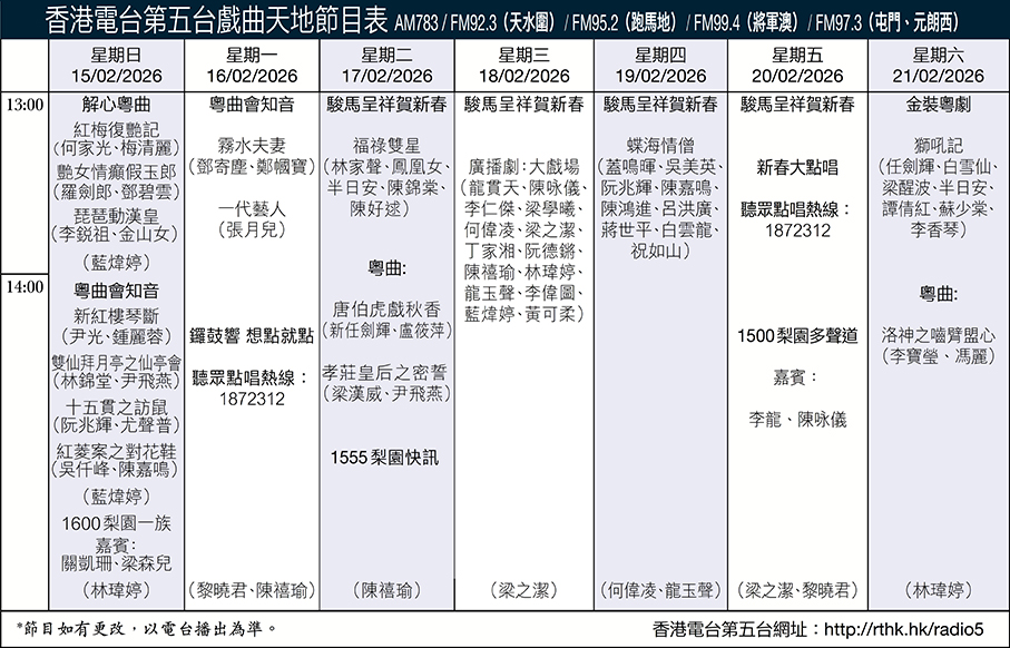 香港電台第五台戲曲天地節目表