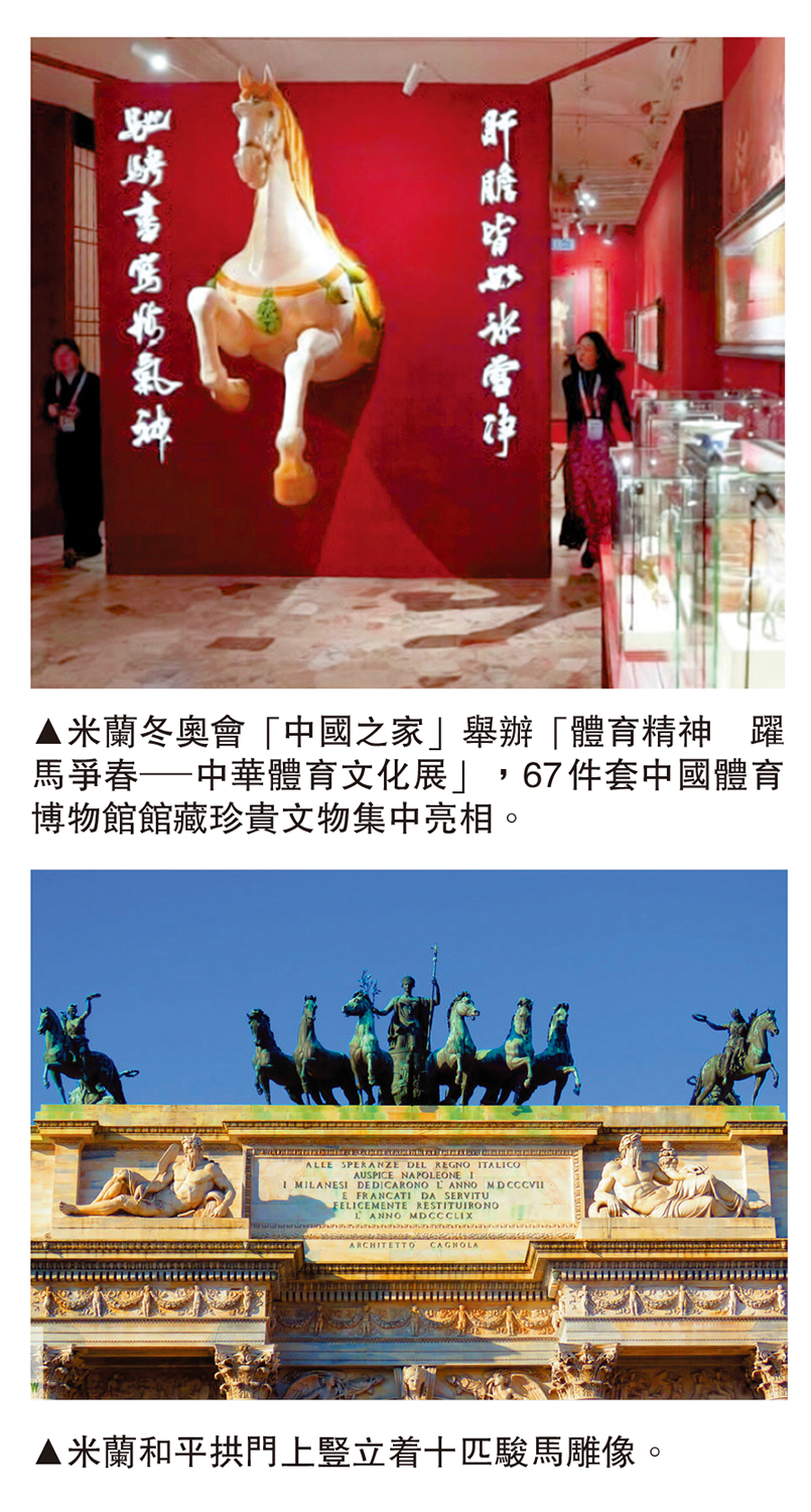 除了歐洲的馬,米蘭冬奧會期間還有遠道而來的「中國馬」。步入米蘭冬奧會「中國之家」,在「體育精神 躍馬爭春──中華體育文化展」,67件套中國體育博物館館藏珍貴文物集中亮相。一位米蘭華人帶着意大利友人前來觀展,他的朋友說:「太精美了,期待有機會能到中國去。」