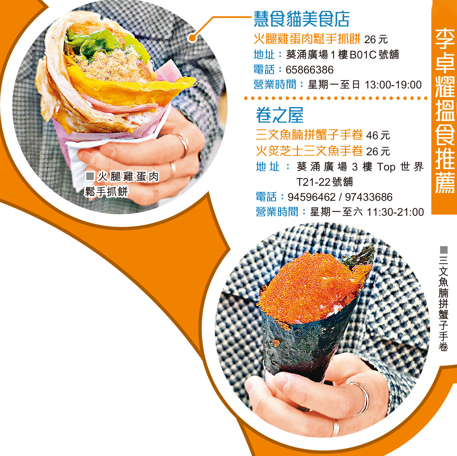 葵涌廣場向來是本地美食激戰區,在葵廣「掃街」吃遍各種本地小食亦是一大樂趣,原來這裏亦是香港羽毛球「一哥」李卓耀的「主場」,足料又抵食的手卷及手抓餅更是他從學生時代至今的心頭好,讓他再三回味!