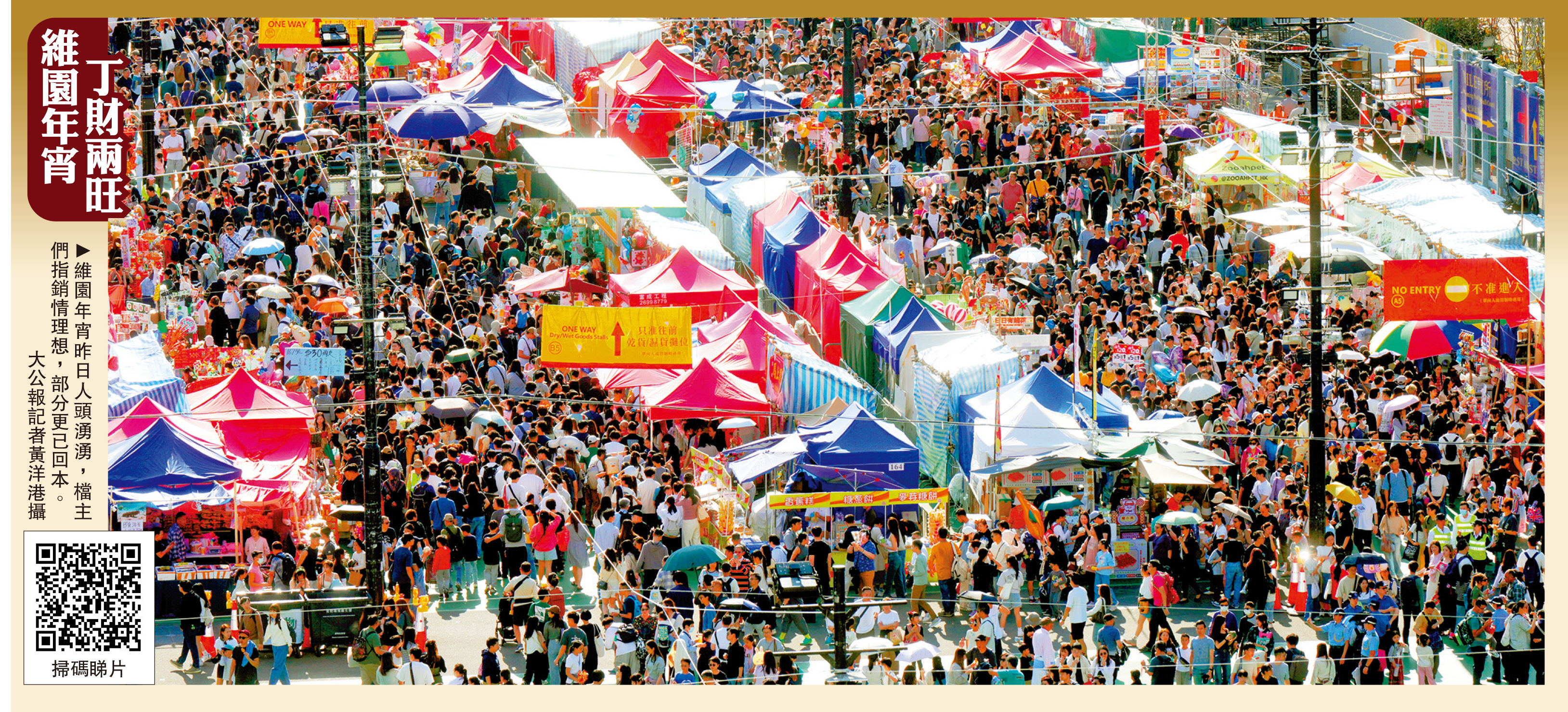 今日是年廿九,送蛇迎馬。許多市民昨日趁周日逛年宵市場,大公報記者直擊全港規模最大的維園年宵市場情況。有受訪檔戶表示,近日天氣宜人,帶動客流及銷情,已提早「回本」;有市民跨區行年宵,感受節日氣氛;有內地遊客專門到場,體驗香港的春節氛圍。