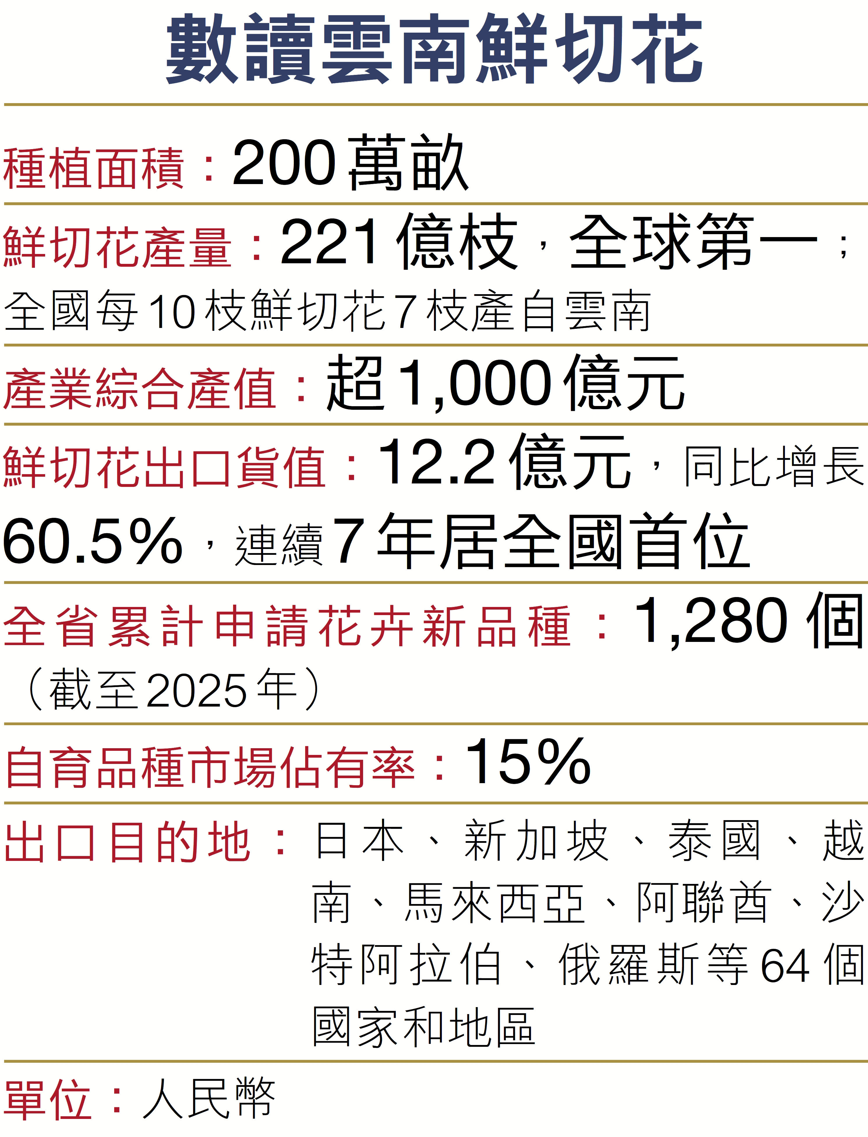 每逢佳節,鮮花總是頻添暖意。今年,自主研發的國風月季格外暖心。農曆新年來臨,在陝西西安的張女士收到了一份美麗的春節禮物:朋友給她訂購了兩株「寶華」中國風月季盆栽,「我知道這個花,前段時間在網上可火了,咱國家隊自主研發的花兒,咱國人給取的名,既高大上,又接地氣,真好。」 張女士說。事實上,寶華月季只是近年來中國自主研發的新品月季中的一員,2026年「中國風」月季新品發布盛典上,集中展示了1,000多個月季新品,可謂是中國花卉產業在種源突破上的一次驚艷亮相,再加上2025年發布的1,000餘個新品,「中國風、中國芯、中國造」的新品月季已經突破2,000+。 ●文:香港文匯報記者 譚旻煦 雲南報道
