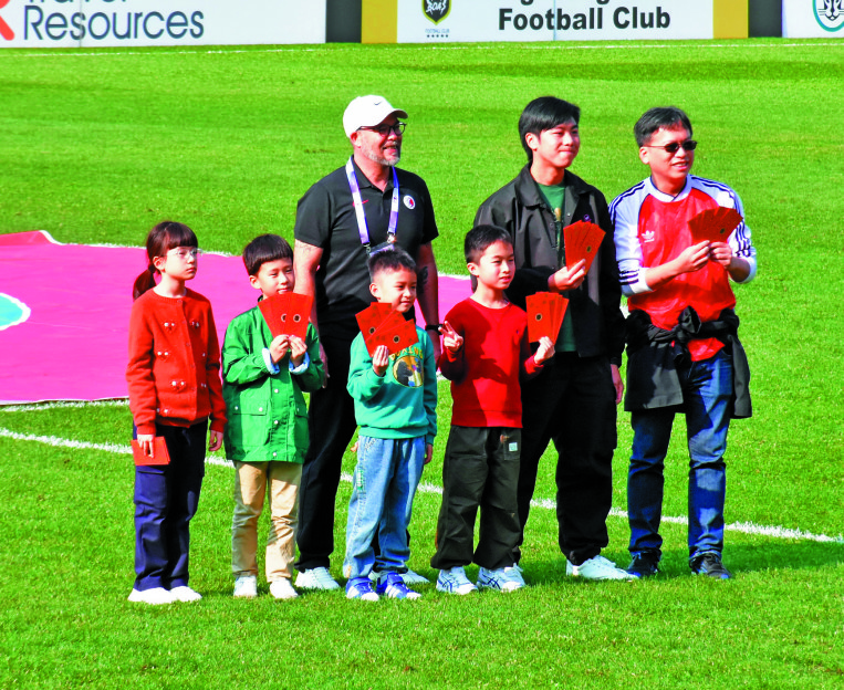 圖﹕港足主帥盧比度(後排左一)擔任小遊戲嘉賓。