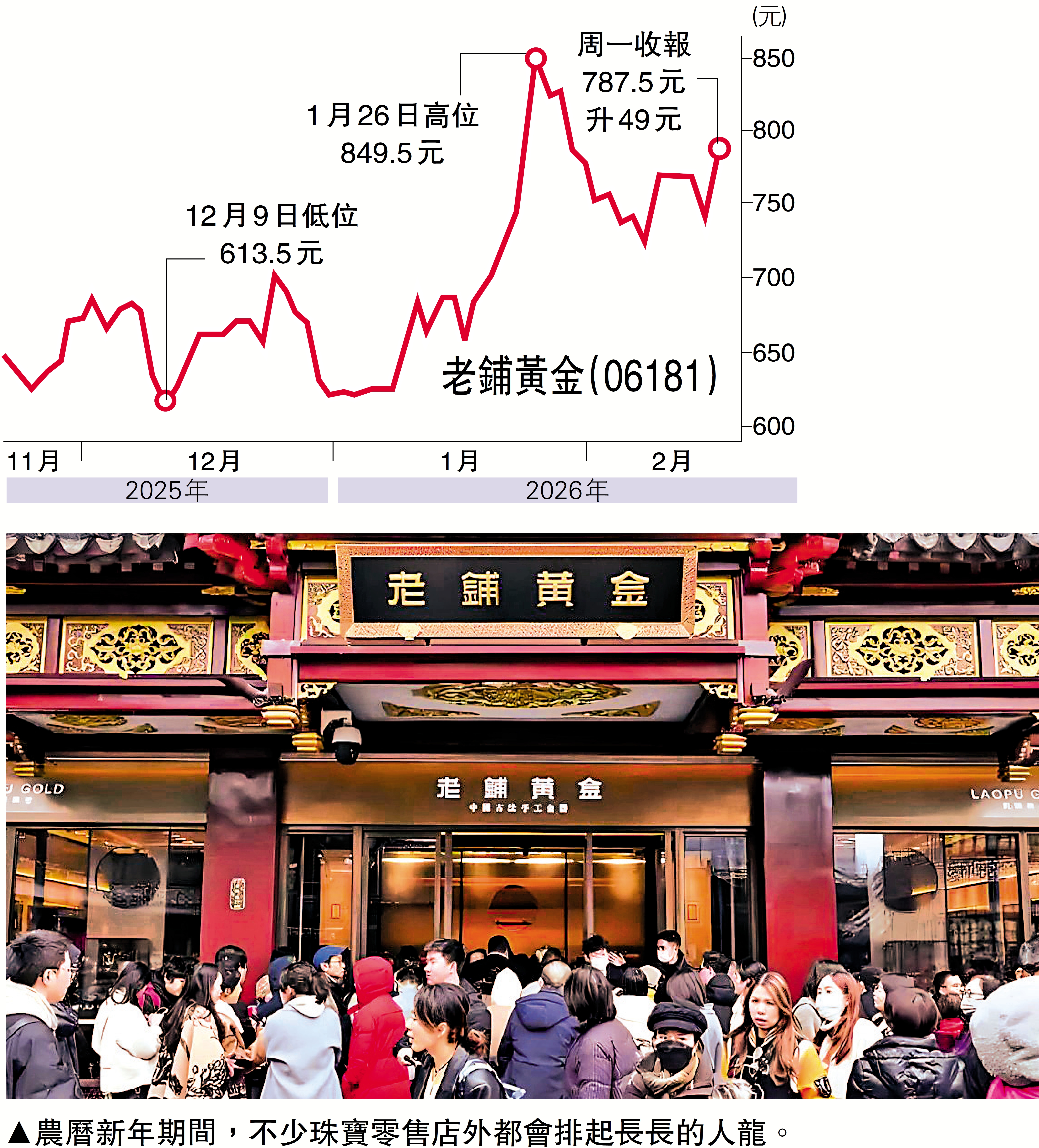 謝明光又指,若要炒季節性因素,內地珠寶零售商的表現往往會較佳,以老鋪黃金2025年上半年業績為例,營業額約123.5億元(人民幣,下同),按年大幅增長251%,純利約22.7億元,按年增長約286%。相關的業績顯示,公司於當年農曆新年期間的終端消費熱度持續高企,多地門店出現排隊現象,即使金價快速上漲導致2025年上半年毛利率略微降至38.1%,但由於收入增長遠超成本增長,導致淨利潤出現爆發式增加。