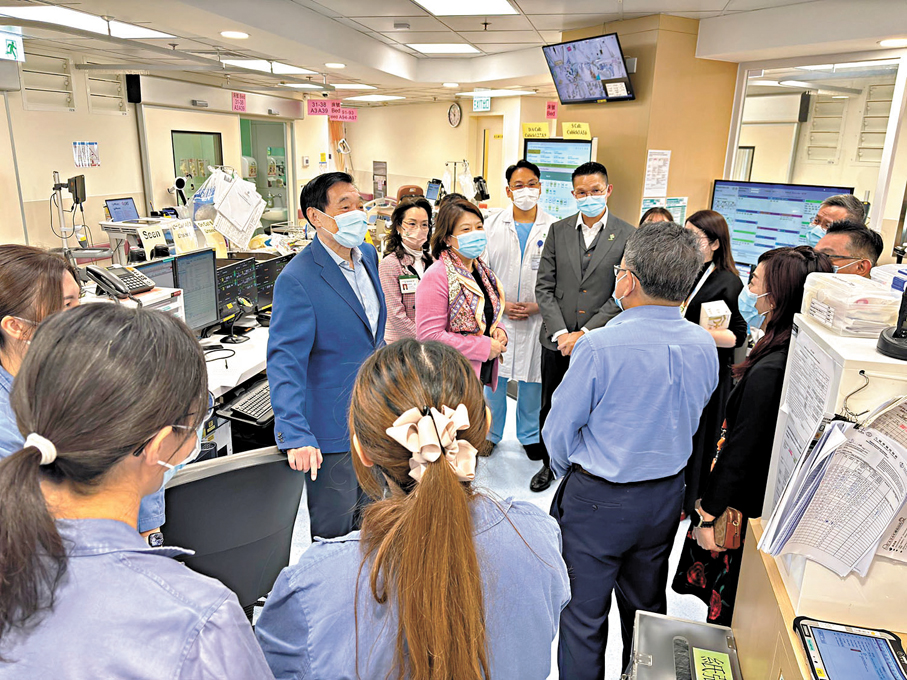 香港文匯報訊 醫管局昨日在社交平台發文表示,醫管局主席范鴻齡及行政總裁李夏茵昨日前往將軍澳醫院及大埔那打素醫院,視察醫院在新春期間的整體運作,感謝前線同事緊守崗位,並且齊心合力推行公營醫療改革,確保各公立醫院及門診運作暢順,持續加大對貧、急、重、危病人的照顧,進一步守護市民健康。
