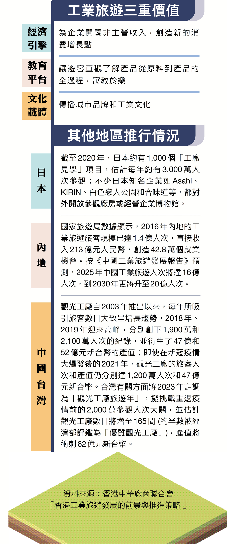 林世豪還提到,一些工廠已獲得ISO等認證,未來若能考慮安全與污染控制,並提供合理的參觀路線,將更具吸引力。另外,企業還可在工廠現場販售特色產品或限量版產品,增加對遊客的吸引力。