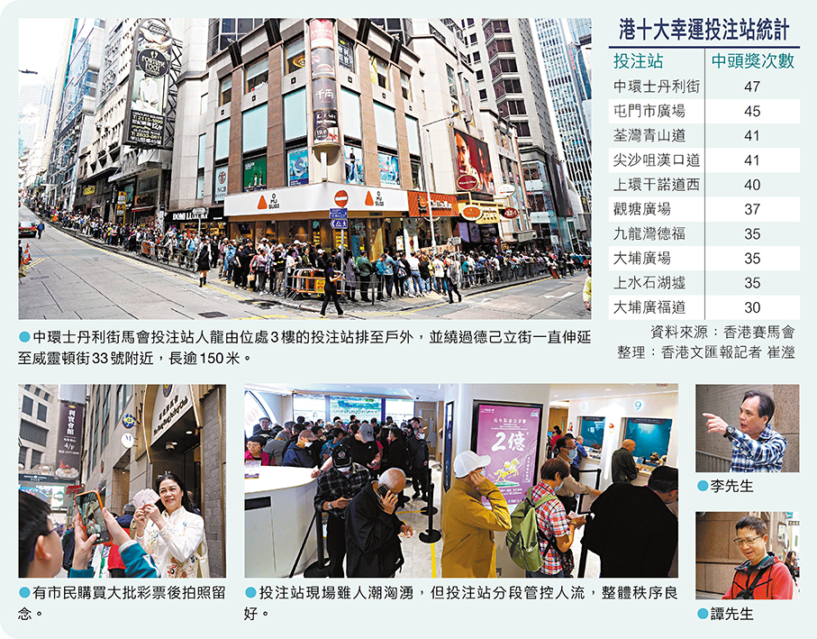 2億獎金破紀錄 全城瘋買六合彩 中環「幸運投注站」人龍長逾百五米 市民暢想橫財夢 願援助工傷基層工友