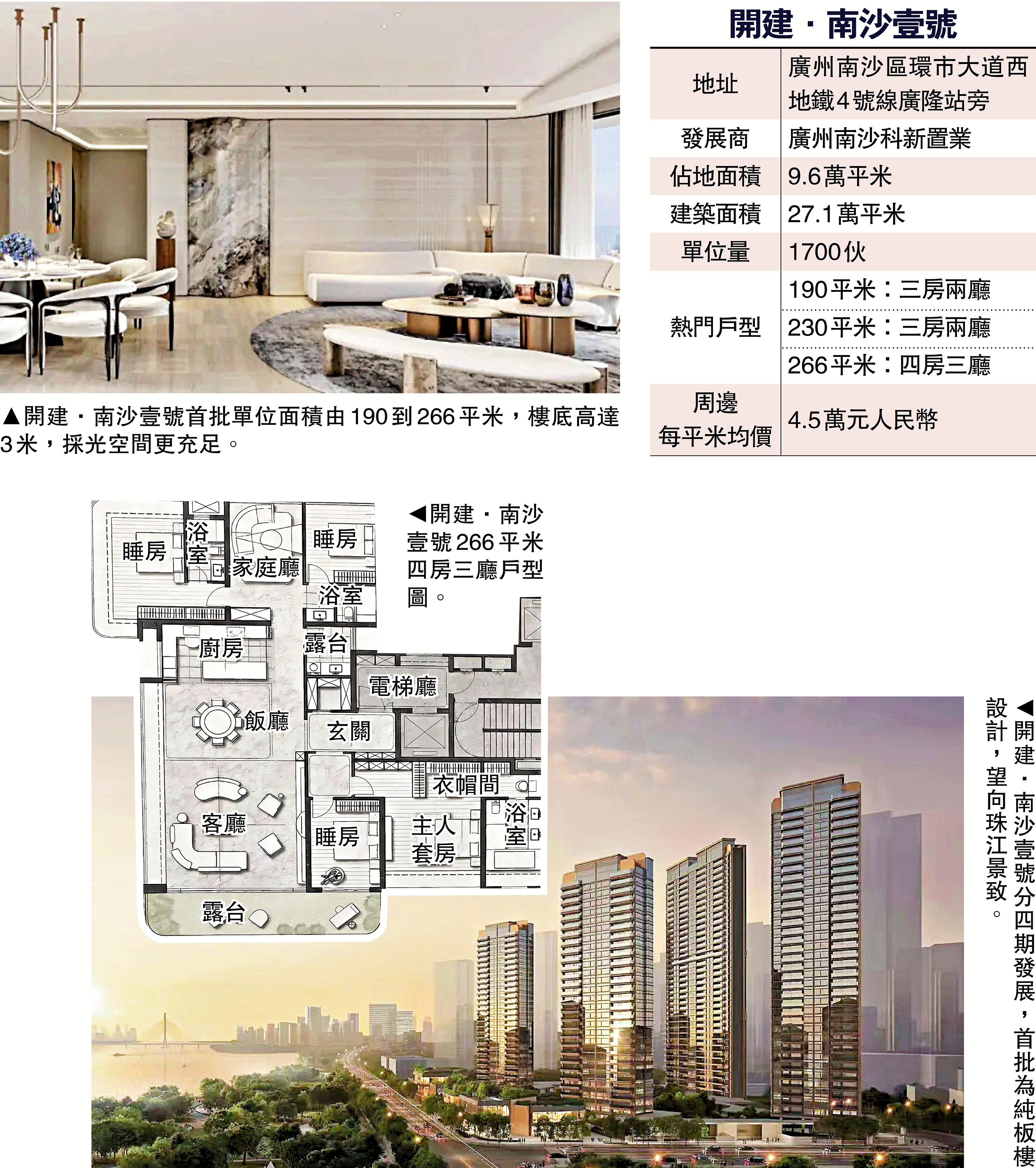 矚目豪宅/開建·南沙壹號主打大平層 望三江交匯