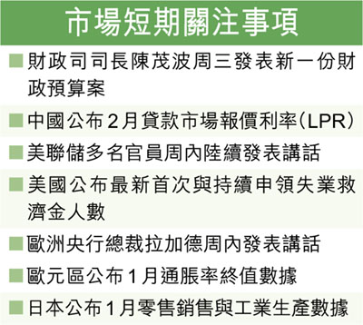 另一方面,本周全球不同地區有多項重要經濟數據與消息公布,或會左右投資市場表現。此外,市場亦關注美國與伊朗地緣政治局勢最新發展。