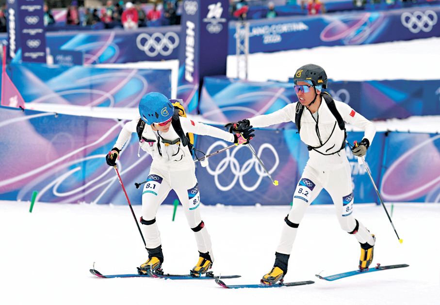 米蘭冬奧會新增大項滑雪登山21日完賽,法國組合哈羅普/安塞爾梅以26分57秒44奪得混合接力冠軍,中國年輕組合次旦玉珍/布魯爾(圖)在總共12組選手中拚得第八名。