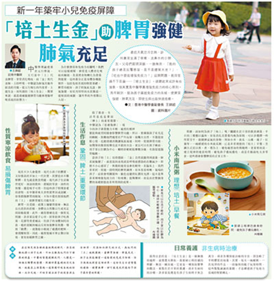 新一年築牢小兒免疫屏障 「培土生金」助脾胃強健 肺氣充足
