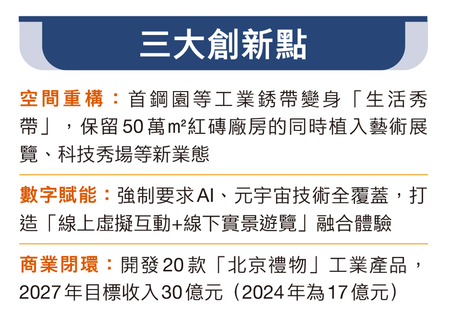 工業遺產與文旅體驗的深度融合,讓首鋼園持續圈粉。截至去年底,園區客流量已超過1,300萬人次。「三高爐是首鋼的『明星建築』,深受遊客喜愛。」北京首鋼園區綜合服務有限公司文化旅遊分公司黨支部書記趙新接受香港文匯報採訪時介紹,高爐9.7米平台上的「鋼鐵是這樣煉成的」大型沙盤,完整呈現了從鐵礦石採礦、加工到煉鐵煉鋼、成品產出的全流程,成為中小學研學熱門打卡點。