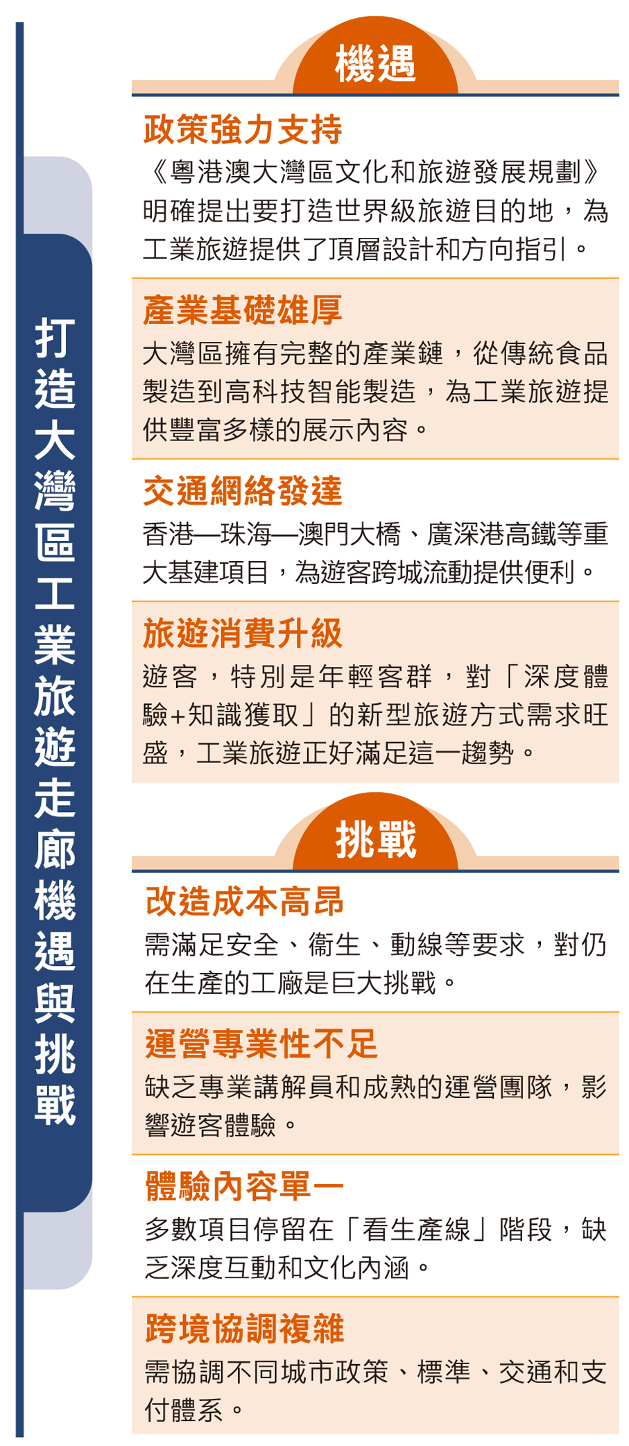 業內專家指出,大灣區內香港、深圳、東莞等城市各有產業特色,具備構建工業旅遊走廊的天然基礎。推動三地工業旅遊資源聯動,打造「大灣區工業旅遊走廊」和「1小時工業文化圈」,不僅能豐富灣區文旅內涵,更能促進產業協同發展。