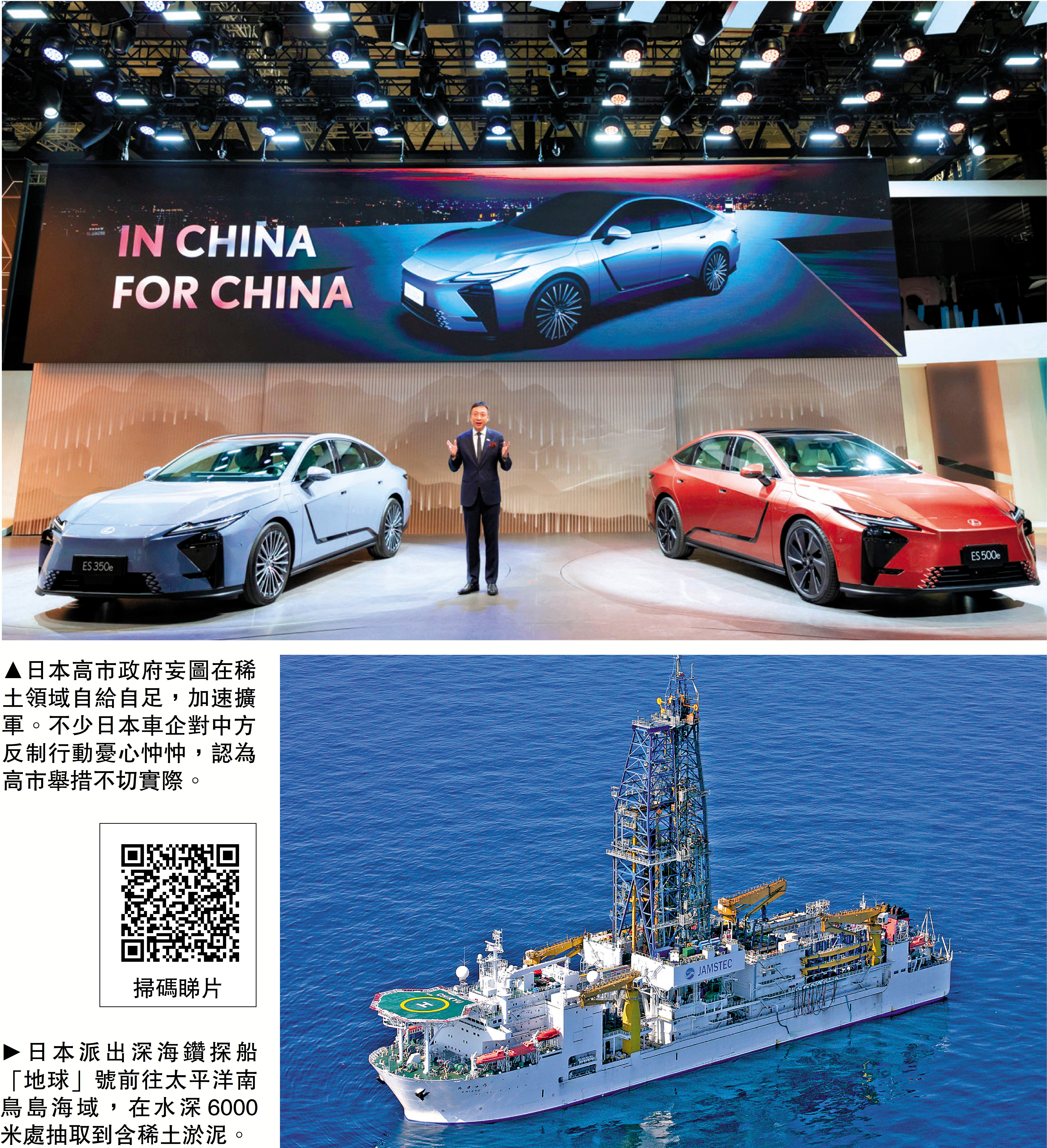 日本首相高市早苗上台後,發表涉台錯誤言論,妄言「台灣有事,日本有事」,陰謀突破專守防衛,擴大武器出口,復辟軍國主義,加速邁向進攻型軍事大國。稀土作為工業維生素,是軍工企業不可或缺的資源,日本政府不計成本推動深海稀土採挖實驗,暗藏非法擴軍的不軌圖謀。